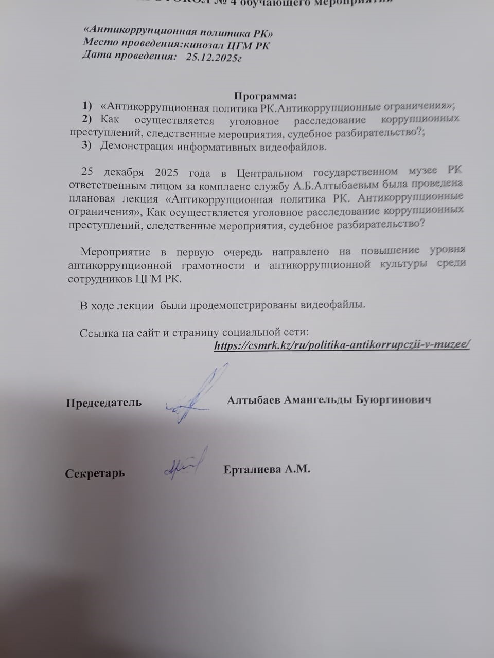 - 25.12.2025 г. Протокол обучающего мероприятия за 4 квартал