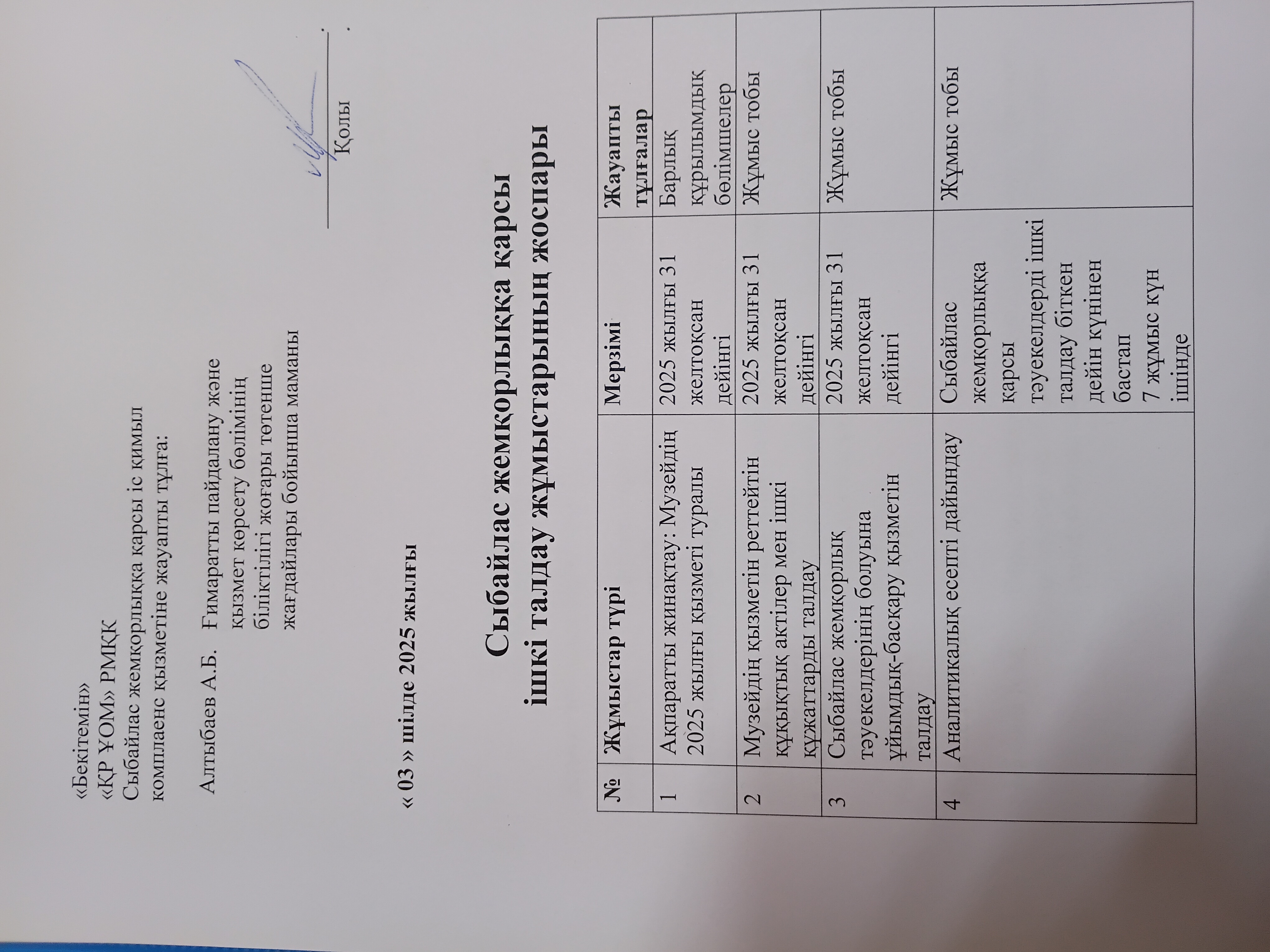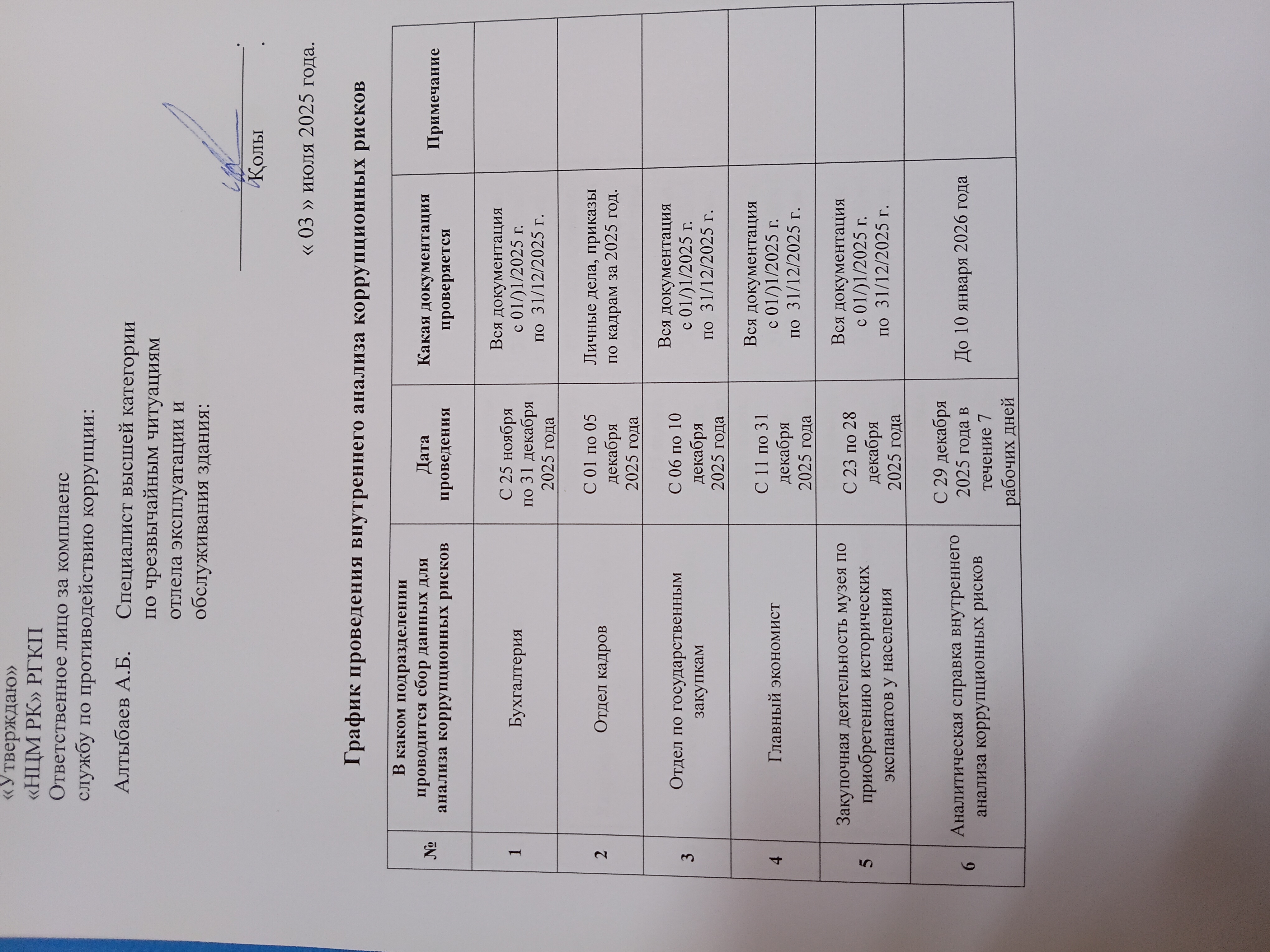 - План осуществления внутреннего анализа коррупционных рисков на 2025 год