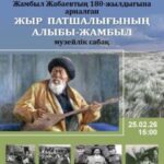 2026 года 25 февраля в Национальном центральном музее состоится музейный урок для инклюзивных детей «Жыр патшалығының алыбы-Жамбыл». На музейном уроке будет показан видеоролик о Жамбыле Жабаеве и выставка из музейного фонда. Мастер Роза Махмутова организует для школьников мастер-класс с портретом акына, а… Читать далее: 25.02.2026 г. Музейный урок для инклюзивных детей «Жыр патшалығының алыбы-Жамбыл» - 25.02.2026 г. Выставка-мероприятие, посвященная 180-летию со дня рождения великого акына Жамбыла Жабаева.
